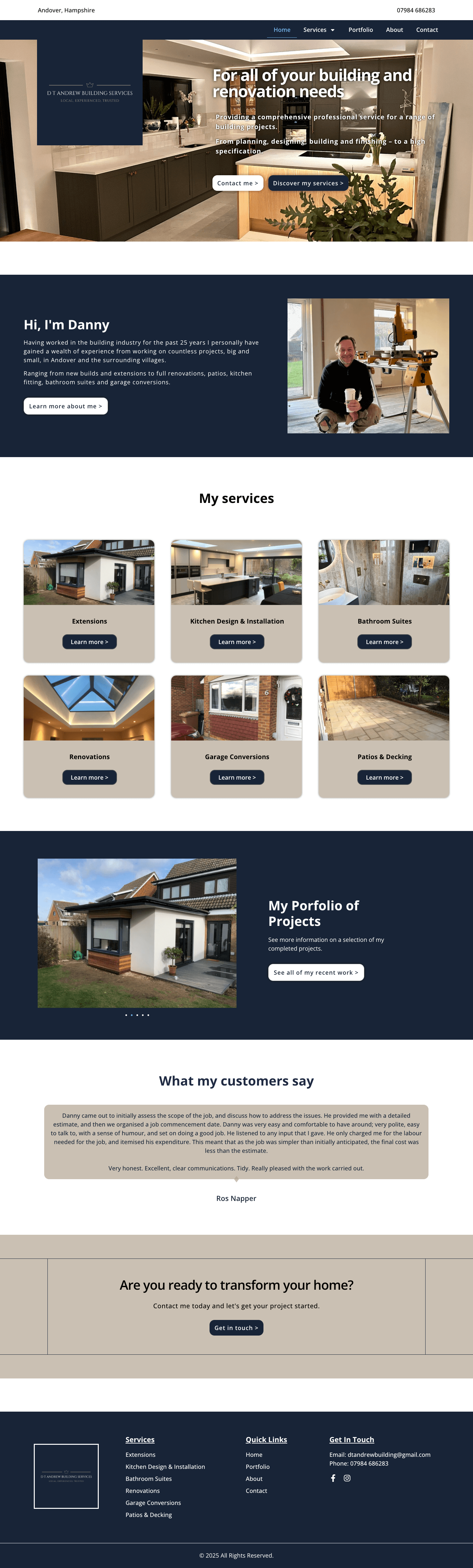 Developed a clean, professional design that reflects DT Andrew’s building expertise.