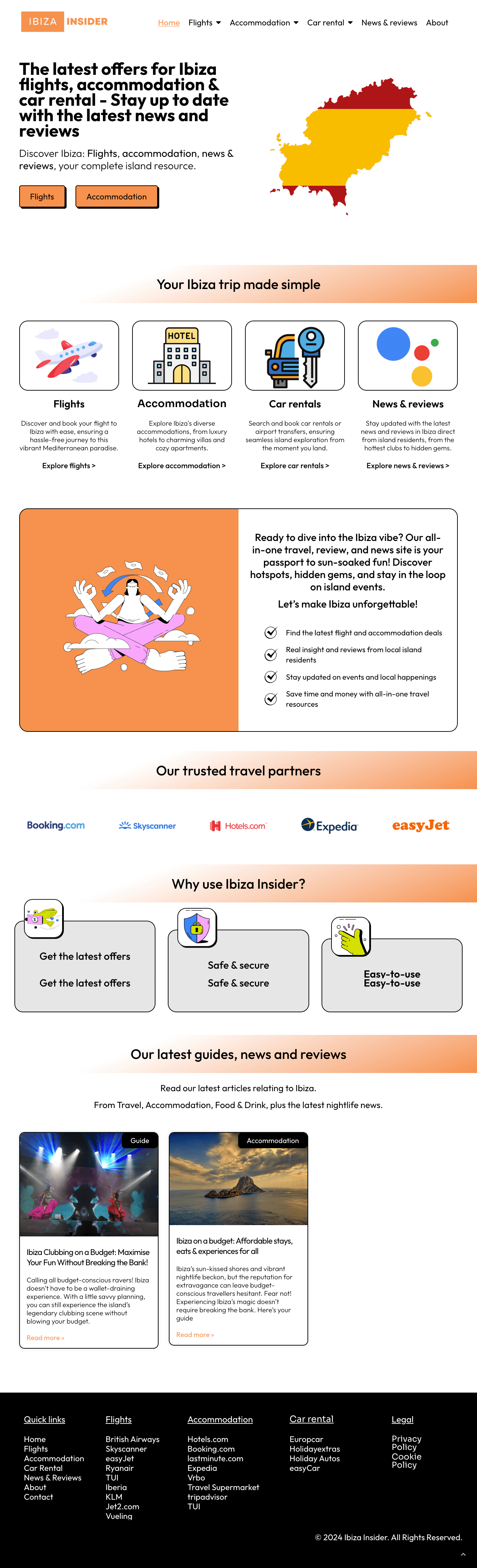 The site offers travel guides, blog content, and seamless booking for flights and accommodation, enhancing the Ibiza experience.
