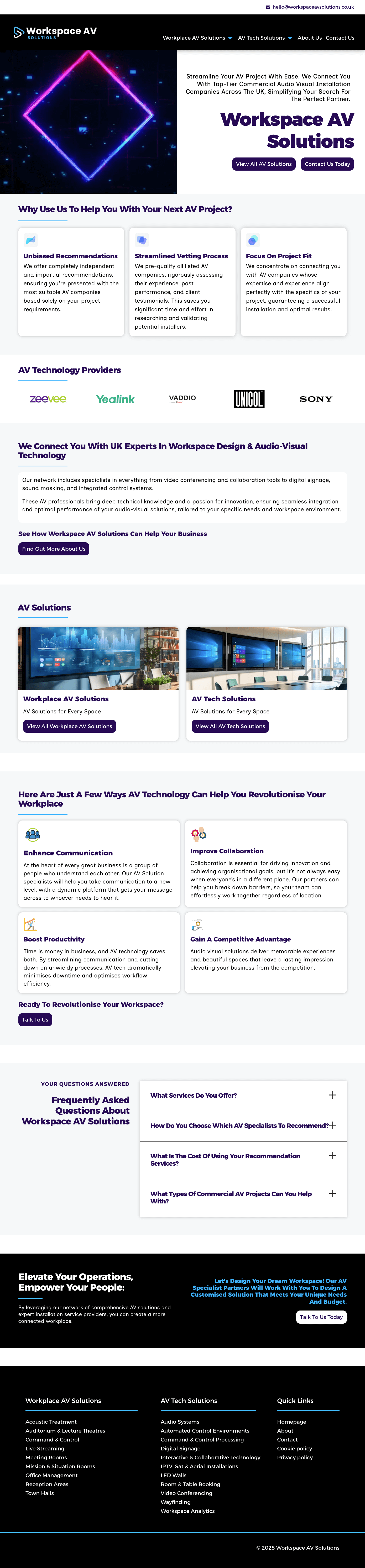 We partnered with Workspace AV Solutions to create an informative platform, connecting clients with top commercial AV companies.